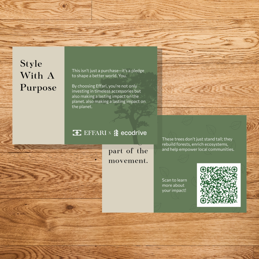 At Effari, we believe luxury should inspire change. That’s why every accessory we create pairs timeless craftsmanship with a purpose. From responsibly sourced materials to partnerships like this one with Ecodrive, we’re redefining what luxury means—making it as meaningful as it is stylish.